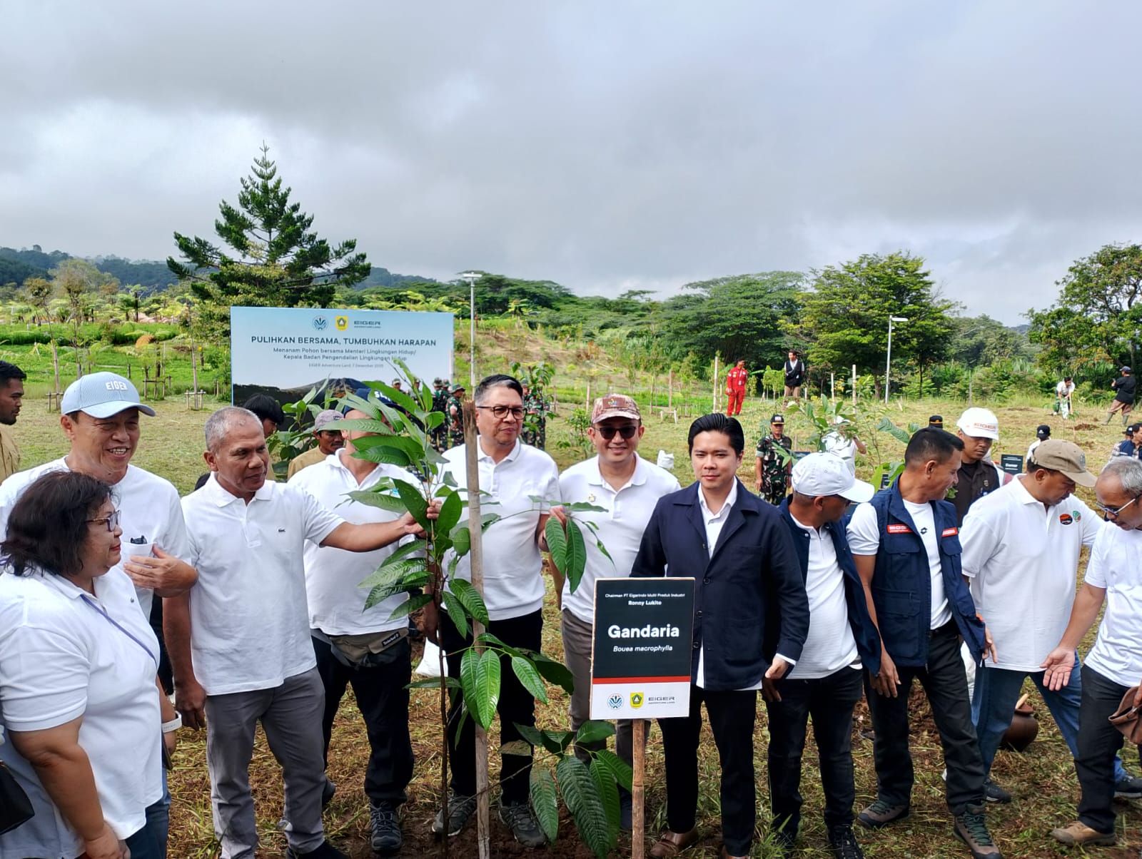 KABARINDO, BOGOR -- Eiger Adventure Land bersama Kementerian Lingkungan Hidup (KLH) melaksanakan kegiatan penanaman pohon endemik di kawasan Eiger Adventure Land, Jalan Lembah Nendeut, Desa Sukagalih, Megamendung, Kabupaten Bogor, Minggu (7/12/2025). Hal ini sebagai upaya bersama sebagai bentuk langkah nyata menjaga keselamatan lingkungan—memulihkan bersama, menumbuhkan harapan.