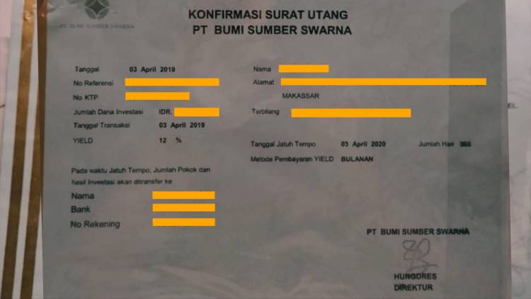 JAKARTA — Kesabaran para korban investasi bodong PT Bumi Sumber Swarna (BSS) akhirnya mencapai batas. Melalui kuasa hukum mereka, Farlin Marta dan Sakti Manurung dari Master Trust Law Firm, para korban akan melayangkan laporan resmi ke kepolisian terhadap Hungdres Halim, Direktur Utama sekaligus penandatangan bilyet investasi PT BSS.