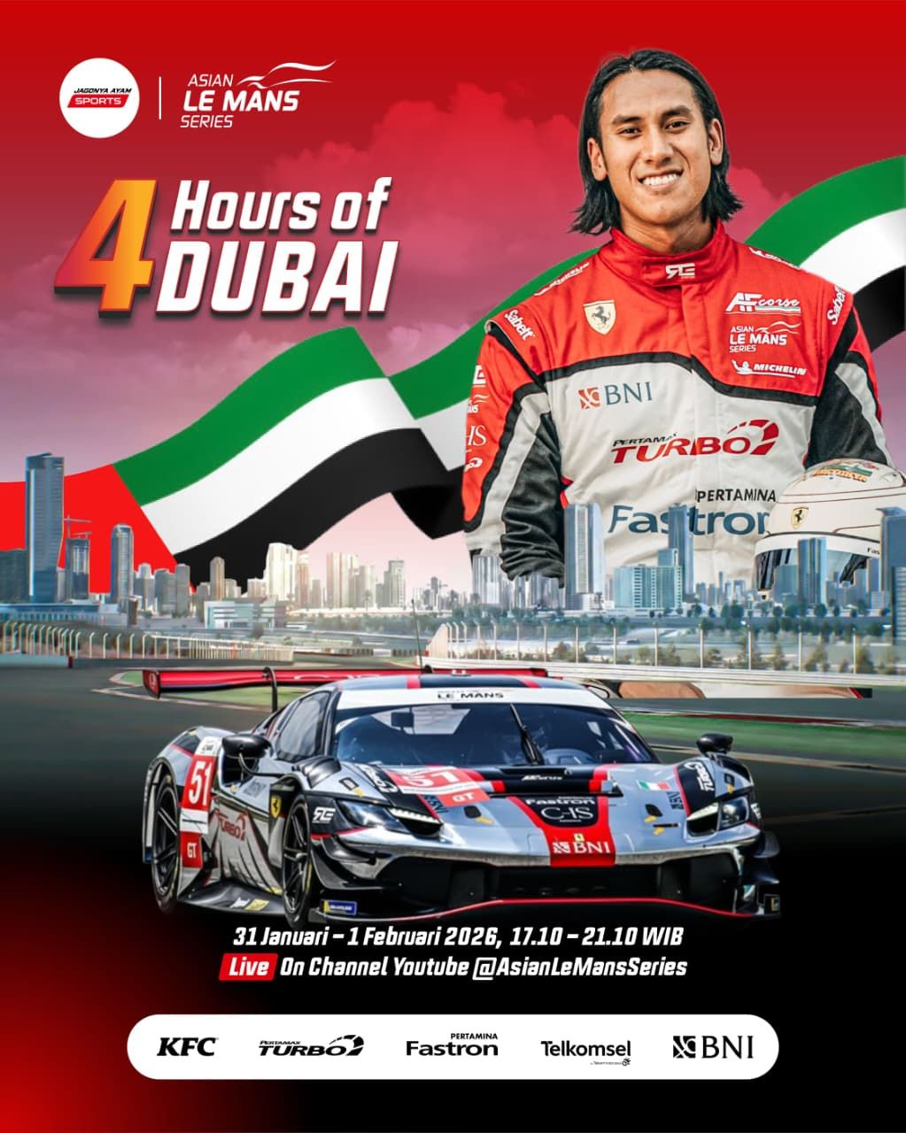 Hasil Private Test Kamis dan dua Free Practice Jumat kian menegaskan peta kekuatan kelas GT Asian Le Mans Series (ALMS) 2025-26. Dubai Autodrome diperkirakan menjadi tempat penuh perjuangan bagi tim AF Corse 51, yang menggeber Ferrari.