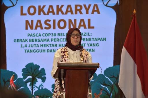 “Dalam forum COP30, saya telah menyampaikan bahwa Presiden memberikan arahan untuk mempercepat pengakuan terhadap 1,4 juta hektare wilayah masyarakat hukum adat, sekaligus melakukan evaluasi tata kelola kehutanan untuk mencapai target tersebut,” ujarnya.
